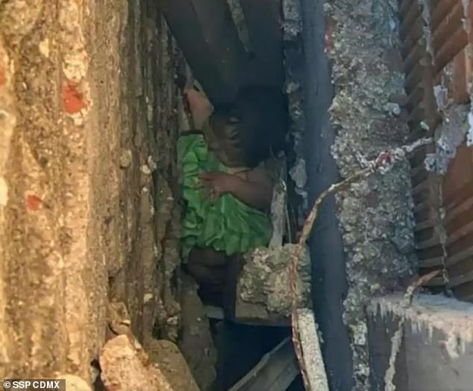 Cánh tay của đứa bé bị mẹ bỏ rơi giữa gạch đá. Ảnh: SSP CDMX